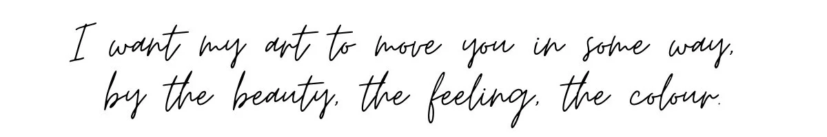 A lover of Mother Earth and all its peoples, of joy and laughter and love, my paintings are a reflection of all that is life. It brings me such joy to connect with another soul over one of my works, a bond created through the feeling I have in creating it and the feeling they have when they look into it.
